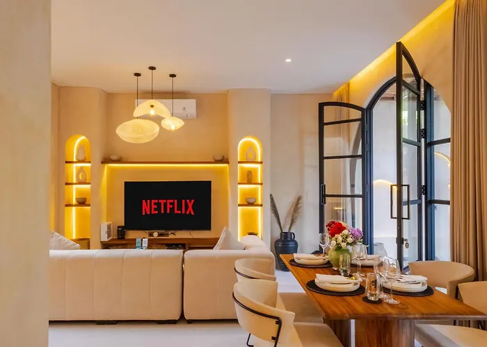 Hay una cocina bien equipada equipada con menaje de cocina para cocinar in situ. Los huéspedes pueden cenar en el restaurante Naughty Nuri's Seminyak, cerca de esta villa. Este lugar también está a 5 km del aeropuerto internacional de Bali Denpasar.